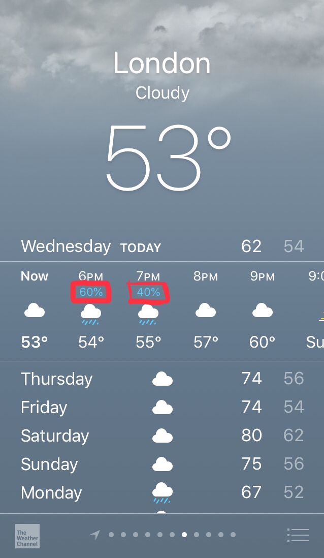 To see weather conditions by the hour, swipe left to right in the hourly forecast. Weather app percentage meaning more less. Select in the bottom right, select settings, and then tap the slider for display current location on or off. A fully blackened triangle, pennant, or flag on the barb represents 50 knots (57.50 mph) of wind speed. The symbols are shown in the following table.